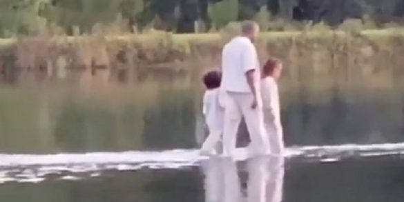 Kanye West : la star « marche » sur l’eau avec ses enfants (photo)