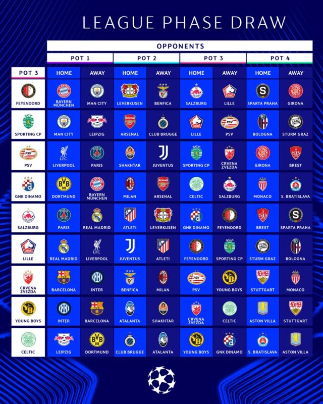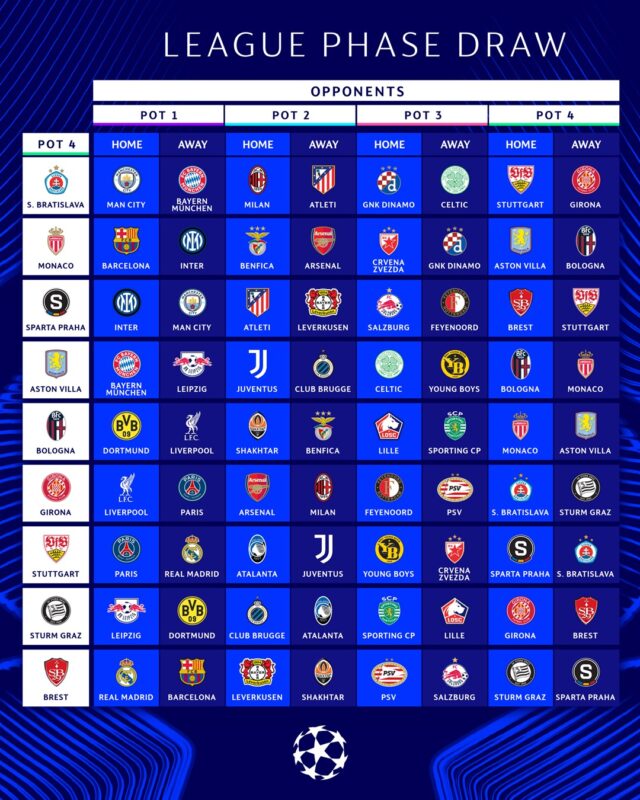 Ce jeudi 29 août 2024 a eu lieu à Monaco le tirage au sort de la 70ᵉ fête de la Ligue des champions.